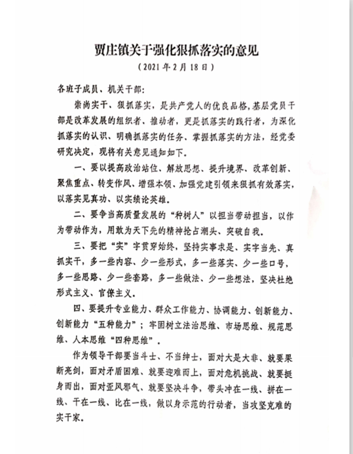 信心在,勇氣就在;實(shí)干在,成功就在。在縣委、縣府的堅(jiān)強(qiáng)領(lǐng)導(dǎo)下,賈莊鎮(zhèn)上下將擔(dān)負(fù)使命拼命干、精準(zhǔn)發(fā)力加油干、緊盯項(xiàng)目埋頭干、勇于擔(dān)當(dāng)帶頭干、聚精會(huì)神合力干,奮力開(kāi)創(chuàng)賈莊經(jīng)濟(jì)社會(huì)高質(zhì)量發(fā)展的新局面。